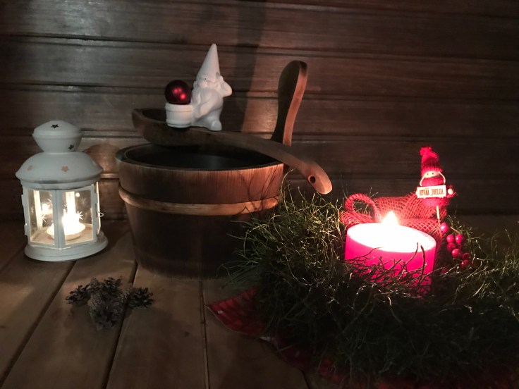 Aino-Karina bezeichnet die finnische Weihnachts-Sauna in ihrem Buch „Saunan Henki“ (dt. Saunageist) deshalb für Finnen als besonders ‚heilig‘, da sie Frieden und Ruhe bringe. Die Joulusauna markiert die Pause von der Arbeit und lässt die Menschen seit Jahrhunderten in gemütlicher Wärme und vertrauter Runde ihrer Familie zuhause zusammen- und ankommen. Viele unserer finnischen Freunde schmücken die Sauna zu Weihnachten mit Kerzen, dekorieren mit Teelichtern und lassen besondere Weihnachtsdüfte in den Aufguss-Bottich tropfen. Frische Kiefern- oder Fichtenzweige entfalten einen besonders wohligen Weihnachtsduft. Für unsere Familie steht fest: Auch wir werden in diesem Jahr Heiligabend in der Sauna begrüßen.