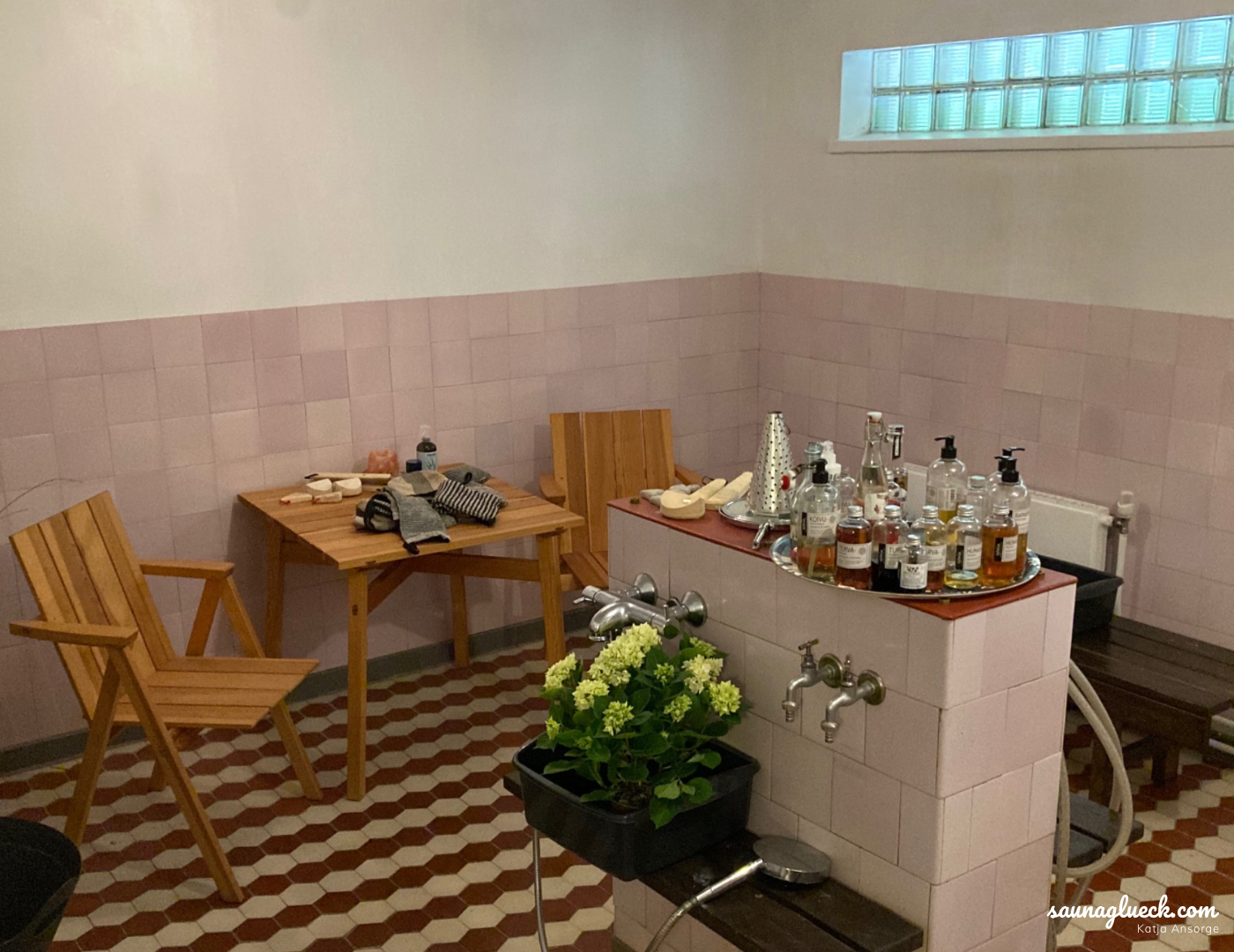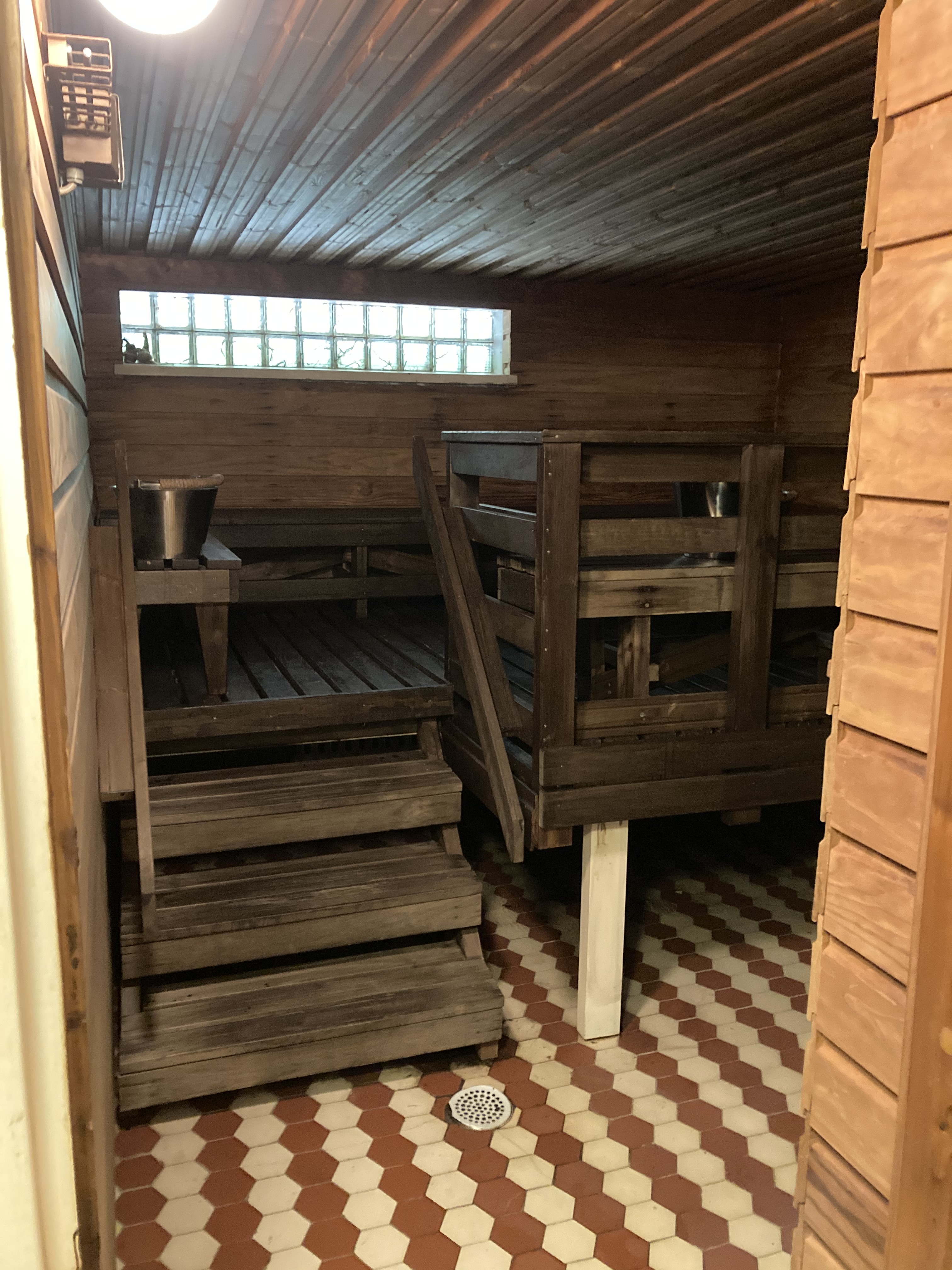 Die zwei Saunen sind laut Eija die vermutlich einzigen noch in Betrieb befindlichen öffentlichen Aalto-Saunen der Welt. Die größere Sauna hat noch die originalen rot-weißen Fliesen von Aino Aalto. Genutzt werde die Jokisauna für viele private Veranstaltungen, Familientreffen, von Namensfesten bis hin zu Gedenkgottesdiensten. Wer vor Ort ist, sollte unbedingt im Erdgeschoss die designpesula (Wäscherei) anschauen. Beim Schließen der Augen konnte ich mir sehr gut das geschäftige Treiben von damals vorstellen, obwohl der Raum mittlerweile als Designladen und Galerie für Kunstausstellungen genutzt wird. Eija sendet noch liebe Grüße an Leser*innen und schreibt zum Schluss „Tervetuloa Jokisaunaan“! Herzlich willkommen in der Jokisauna.