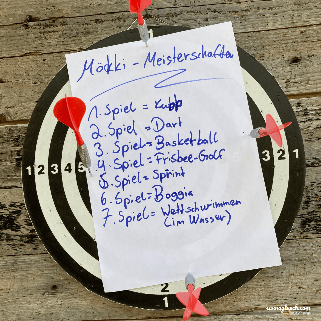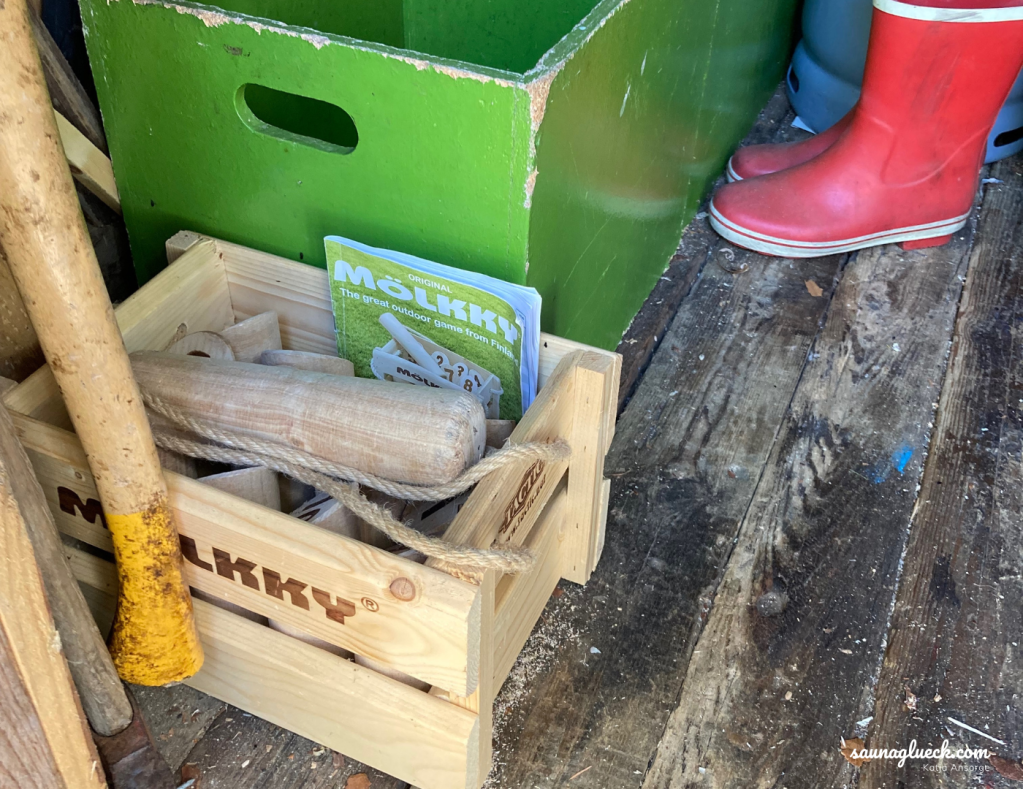 Tradition ist Tradition! Unsere Mökki-Meisterschaften zählen zu den festen Ritualen im Sommerurlaub, den wir seit unseren Finnland-Jahren in der Nähe von Savonlinna im Saimaa-Seenland verbringen. Da eigentlich jedes Mökki in Finnland für Spaß und Spiel gut ausgerüstet ist, müssen auch Fernreisende nichts mitnehmen.
