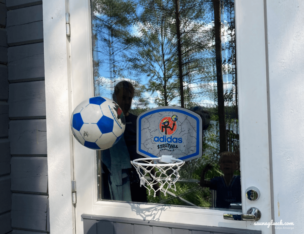 Wir starten mit dem in Schweden sehr beliebten… Kubb, das uns zugegebenermaßen fast noch mehr Spaß macht als das finnische Mölkky. Unsere beiden Grundschulkinder sind hochkonzentriert und immer wieder ändert sich die Konstellation, so dass der Spielausgang lang offen ist. Der Papa macht das Rennen. Weiter geht‘s mit dem Mini-Basketball – hier liegt der Junior mit den meisten Körben vorne.